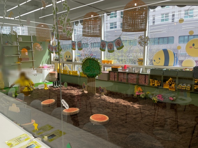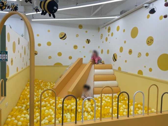 체험시간 전에 조금 일찍 도착한 아이들을 위해 귀여운 꿀벌들로 디자인된 작은 미끄럼틀과 함께 볼풀장이 있습니다. 아이들이 한시도 심심하지 않게 해주려는 점이 참 좋았습니다.