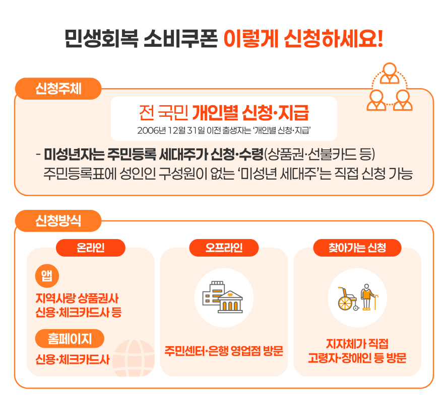 오프라인은 거주지 주민센터에 방문해서 신청서 제출하면 된답니다.