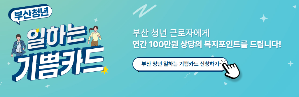 내가 부산에 사는 중소기업 청년이라면? 이건 놓치면 후회각입니다. 이름도 꽤 찰져요. 부산청년 일하는 기쁨카드. 이름값 하죠? 혜택 내용도 꽤 묵직하고요.
