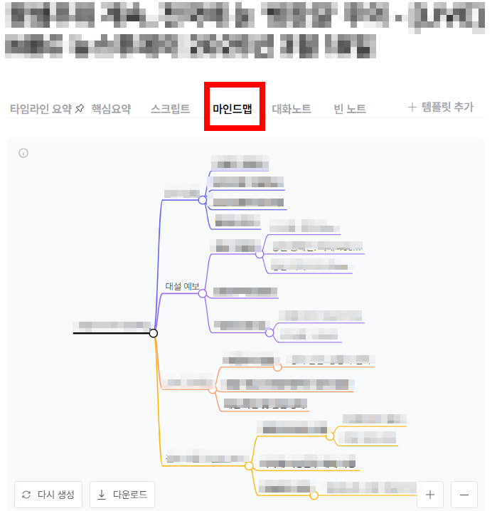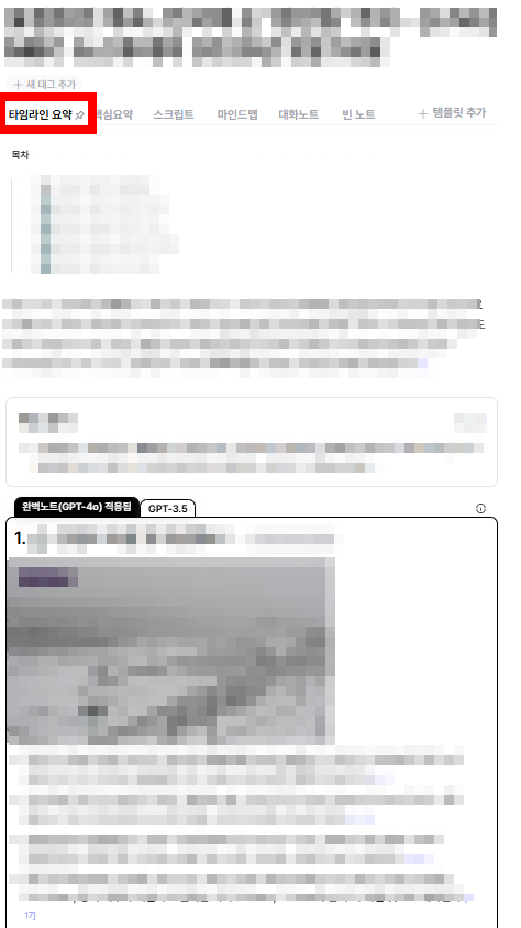 아래는 한 URL을 요약하여 "타임라인 요약", "핵심요약", "스크립트", "마인드맵" 기능 결과를 캡쳐하였습니다.