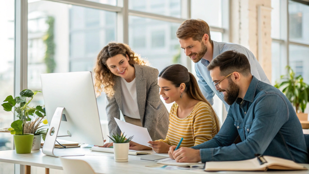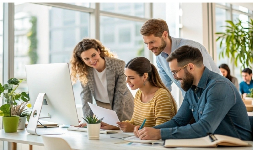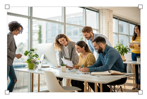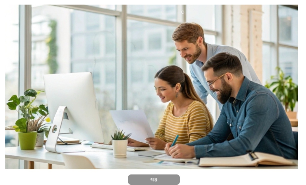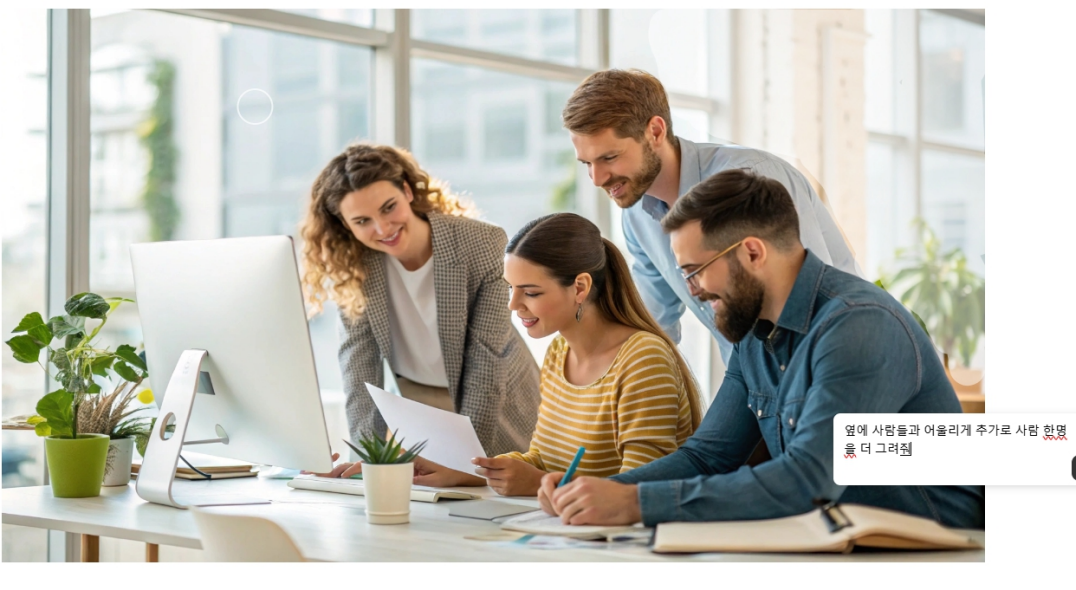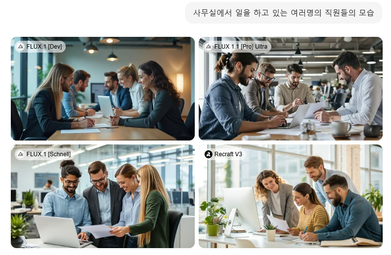 예를 들어, "사무실에서 일을 하고 있는 여러명의 직원들의 모습"이라고 입력하면, 해당하는 이미지가 생성됩니다.