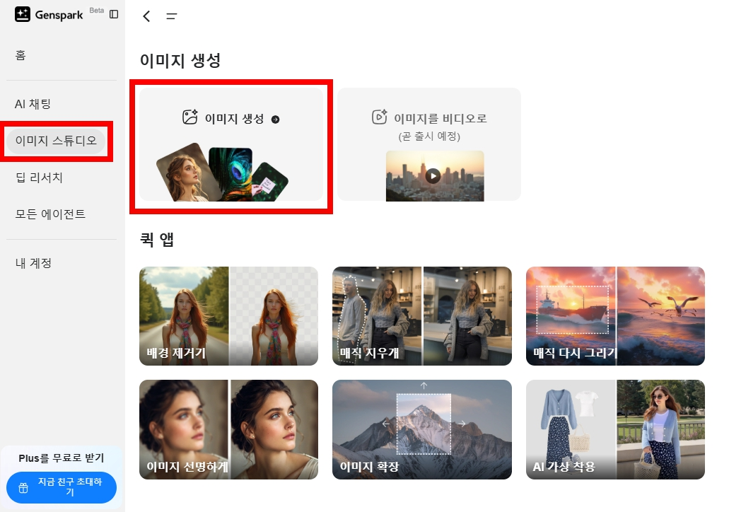 - "이미지 스튜디오"에서 "이미지 생성" 선택
