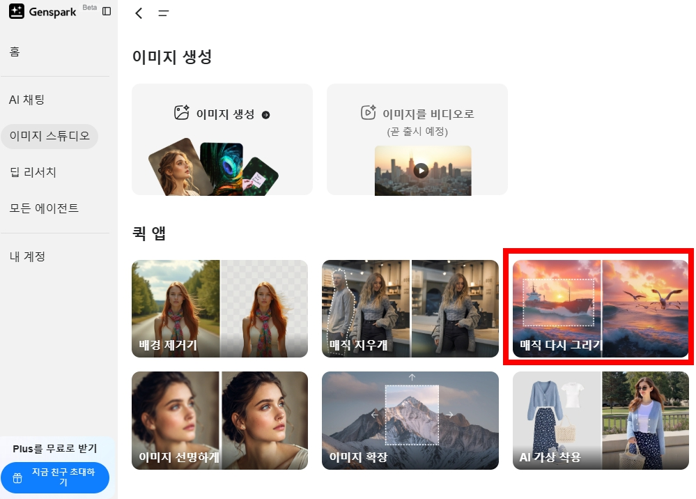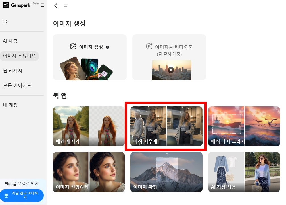 그중에서도 젠스파크(Genspark) 는 무료로 사용할 수 있는 강력한 AI 이미지 편집 도구로, 이미지 배경 제거부터 요소 삭제, 추가, 확장까지 다양한 기능을 제공합니다.
