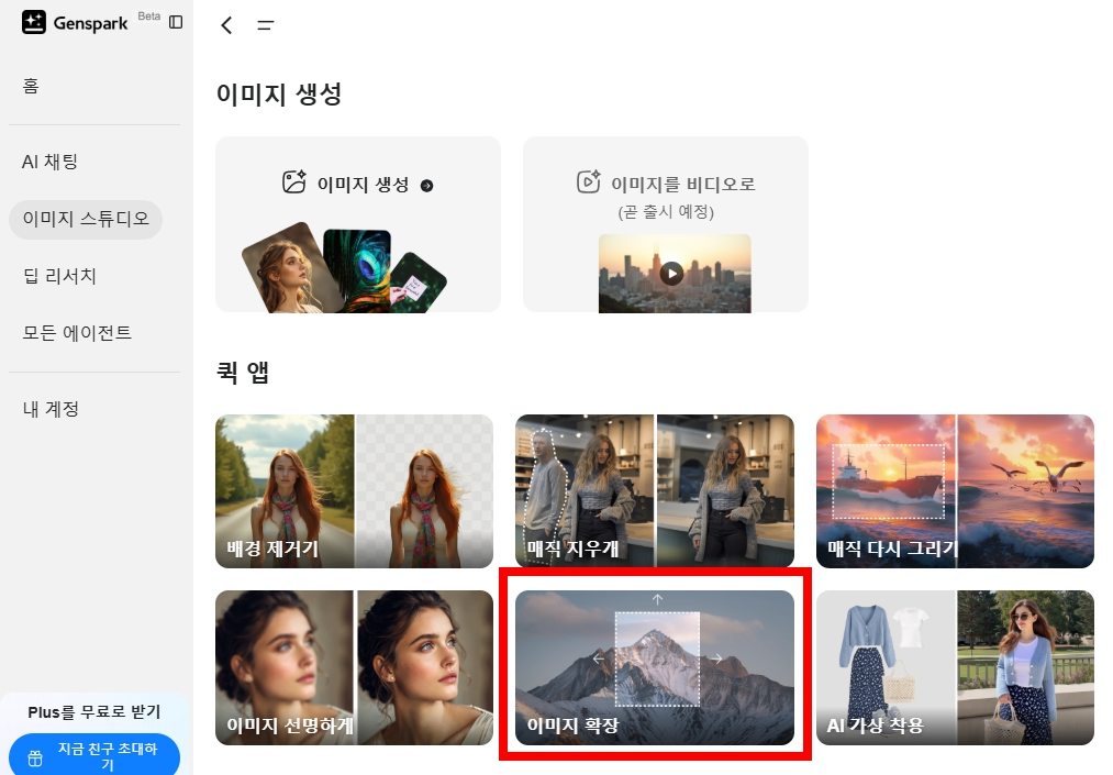 젠스파크를 활용하면 배경 제거, 이미지 일부 삭제, 추가 요소 삽입, 이미지 확장까지 전문가 수준의 작업을 무료로 할 수 있습니다.